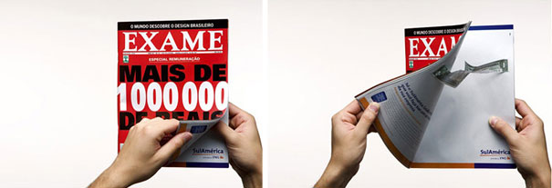 Đây cũng là một trong các mẫu quảng cáo trên tạp chí khiến độc giả có một phen thót tim. Bạn sẽ phải xé đôi tờ đô la để đọc được quảng cáo. Nhưng dĩ nhiên đây không phải tiền thật rồi!
